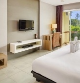 Immerse yourself in luxury with our Hotel Unit. This spacious accommodation offers relaxation in the elegant room featuring a plush queen-sized bed and a large bath, inviting you to unwind and soak away your cares in ultimate comfort.